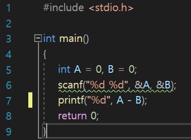 두 정수 A와 B를 입력받은 다음, A-B를 출력하는 프로그램을 작성하시오.