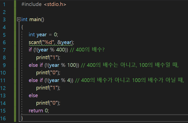 else if (!(year % 4)) // 400의 배수가 아니고 100의 배수가 아닐 때,