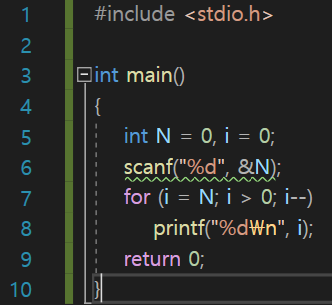 자연수 N이 주어졌을 때, N부터 1까지 한 줄에 하나씩 출력하는 프로그램을 작성하시오.