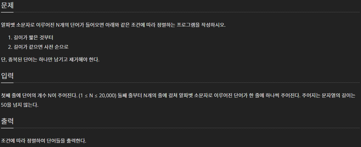백준 1181 단어 정렬 문제를 python으로 풀어보겠습니다.